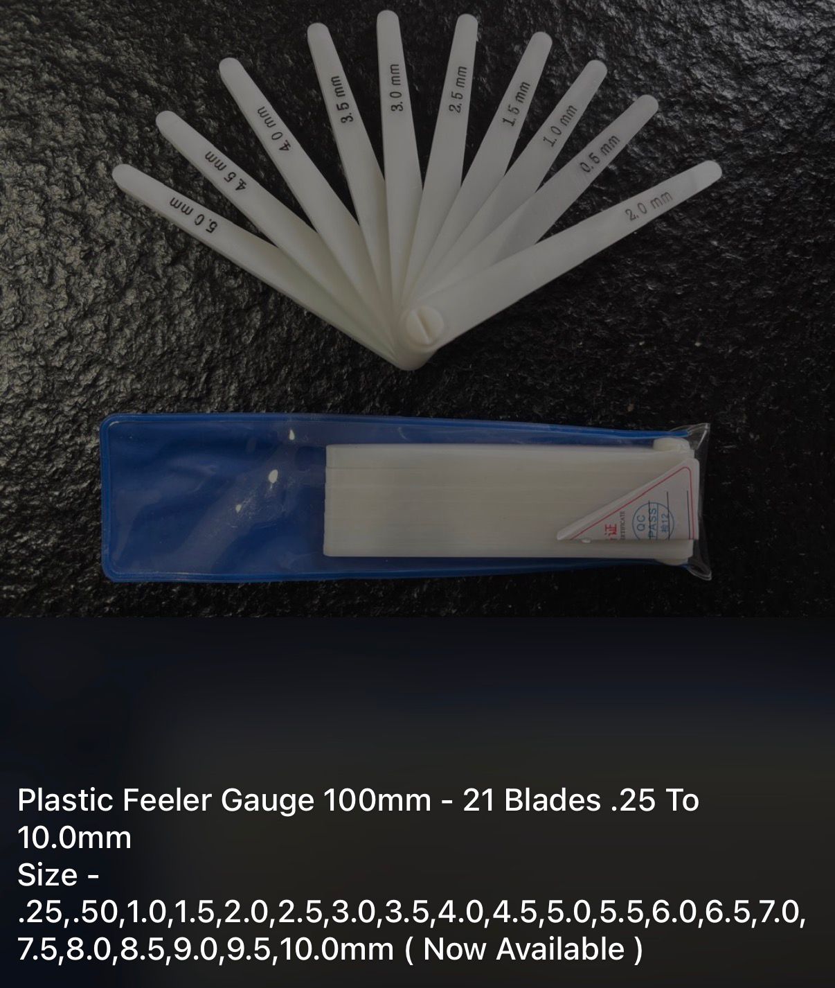 Plastic feeler Gauge Available upto 10 mm